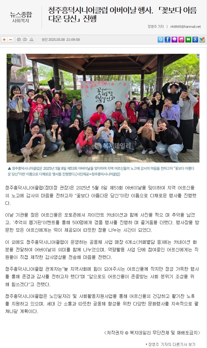 청주흥덕시니어클럽 어버이날 행사, 「꽃보다 아름다운 당신」진행