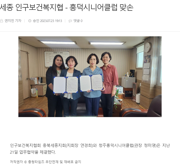 출처 : 세종 인구보건복지협 - 흥덕시니어클럽 맞손 -충청타임즈