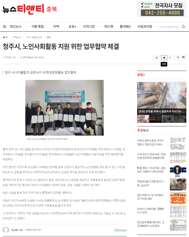 청주시, 노인사회활동 지원 위한 업무협약 체결