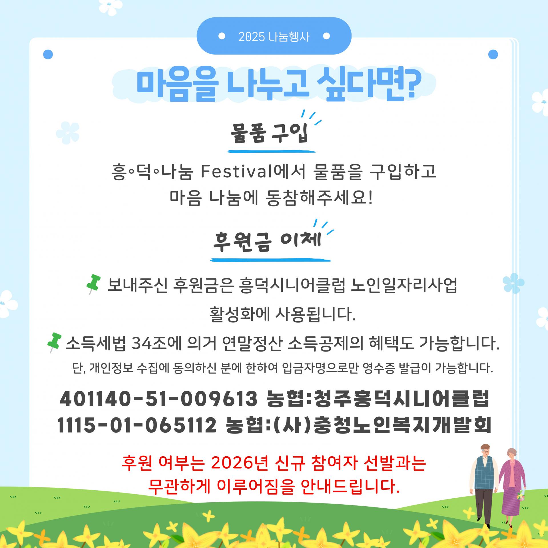 - 농협 401140-51-009613 (청주흥덕시니어클럽)